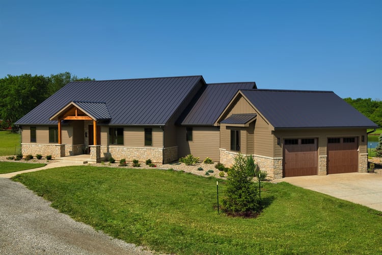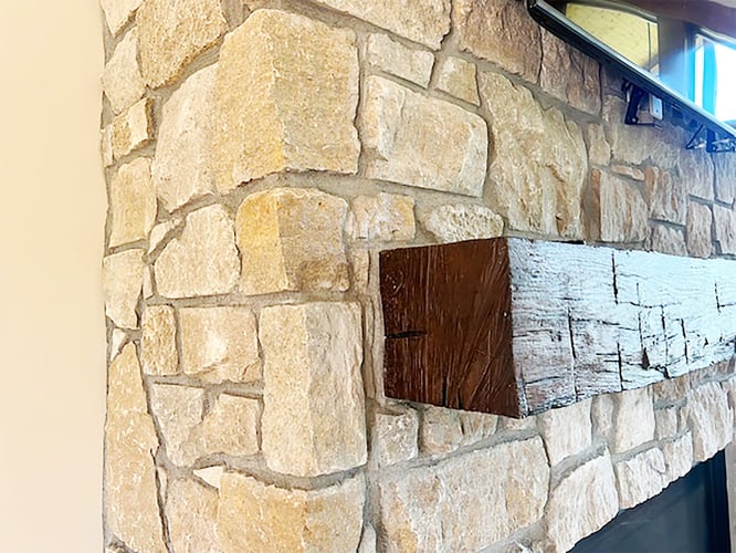 Cottage Gold Veneer, Pewter Mist Caps, EW Gold Hearth, 14″ Wall Block, Kansas River Rock 1.5″, Sod