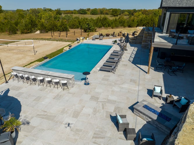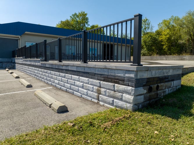 U-Cara Wall, Blackhills Rustic Chopped Stair Treads, 14″ Wall Block, Kansas River Rock, Beacon Hill, Bristol Valley, Ledgestone Coping, Porcelain Tile